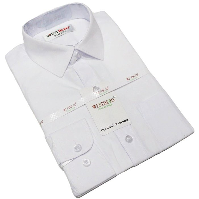 Классическая детская сорочка от WestHero – незаменимый элемент гардероба для школы и торжественных мероприятий. Белая сорочка с длинным рукавом выполнена в прямом силуэте, что обеспечивает комфорт и свободу движений. Доступна в широком диапазоне размеров: от 29/116-122 до 36/158-164. Произведена в Китае.