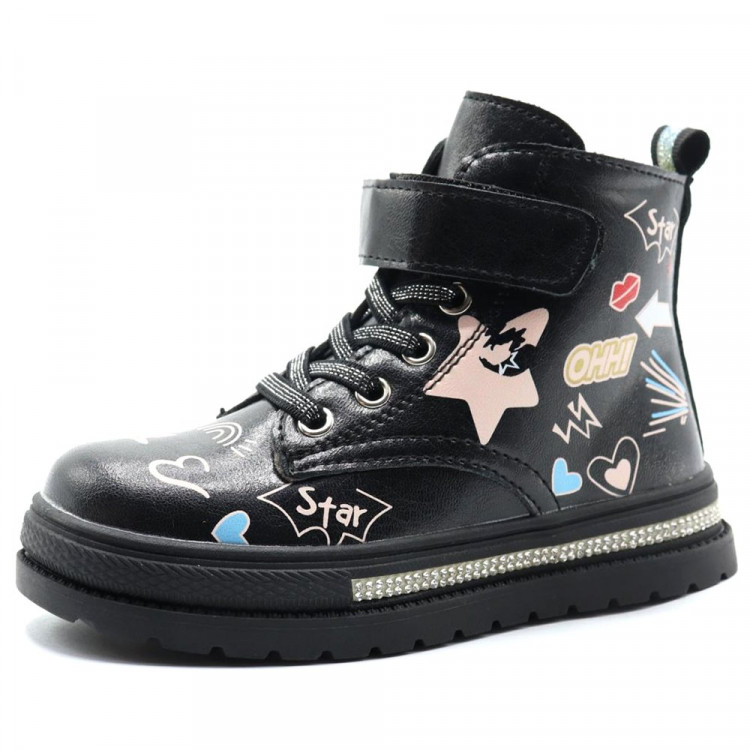яяяБотинки для девочки (Колобок) черный верх-искусственная кожа подкладка - байка артикул kok-5705-01