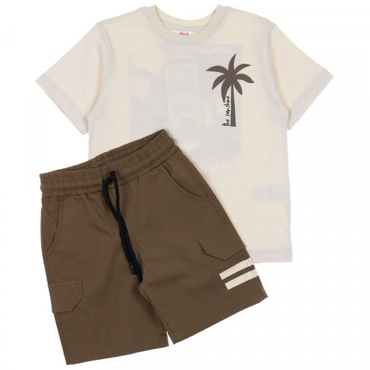 Стильный и комфортный комплект для мальчиков от DMB KIDS! Включает в себя футболку и шорты, выполненные из мягкого и приятного к телу трикотажа. Комплект представлен в модной цветовой гамме - сочетание бежевого и коричневого. Идеальный вариант для активных игр и прогулок в теплую погоду. Подходит для мальчиков ростом от 104 до 128 см (размеры 28-32).