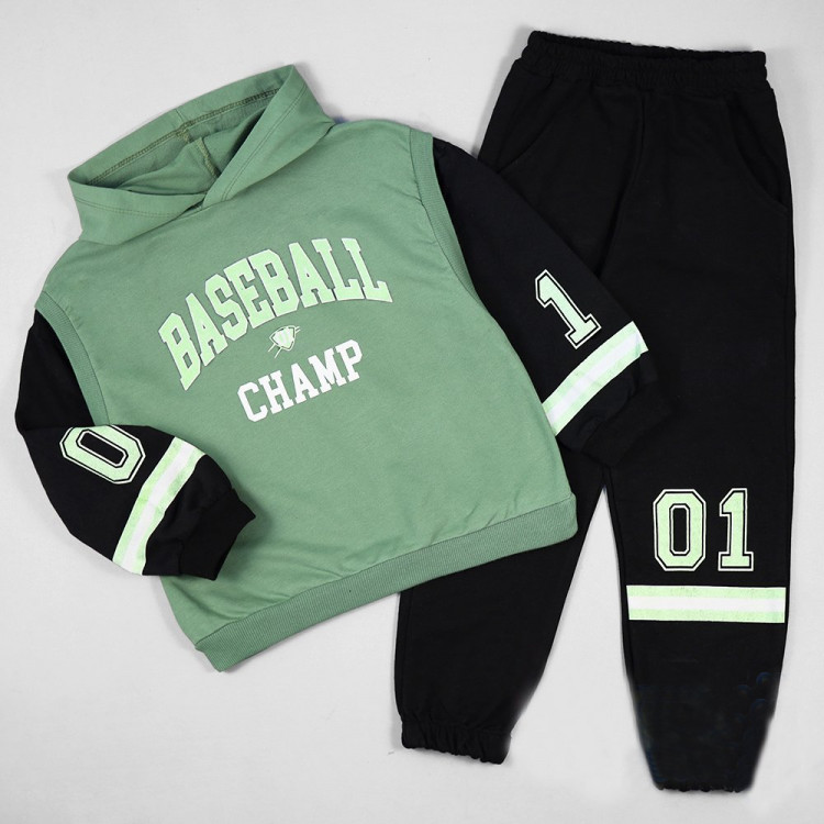 Стильный и комфортный комплект для мальчика от бренда TUFFY. Включает в себя толстовку и брюки, выполненные из мягкого и приятного к телу трикотажа оливкового цвета. Идеальный выбор для повседневной носки, прогулок и активного отдыха. Комплект представлен в размерах 30/116-34/134.