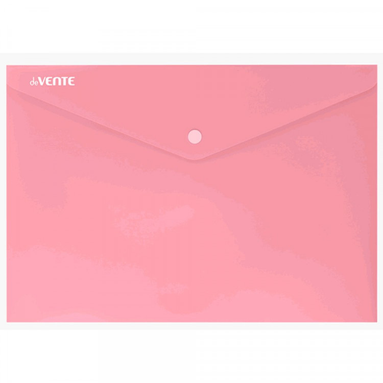 Папка-конверт deVENTE Pastel – удобное и стильное решение для хранения и транспортировки документов формата А4. Изготовленная из прочного пластика плотностью 180 мкм, она надежно защитит ваши бумаги от повреждений и загрязнений. Пастельный розовый цвет придаст вашим документам аккуратный и привлекательный вид. Застежка-кнопка обеспечивает быстрый и легкий доступ к содержимому, предотвращая выпадение документов. Идеально подходит для использования в офисе, дома или в учебных заведениях.
