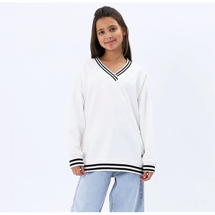 Свитшот с V-образным вырезом для девочки артикул Teto 78113 размер 34/134-44/164 цвет кремовый