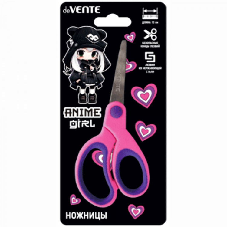 Ножницы детские 130мм прорезиненные ручки (deVENTE) Anime Girl арт.8010408