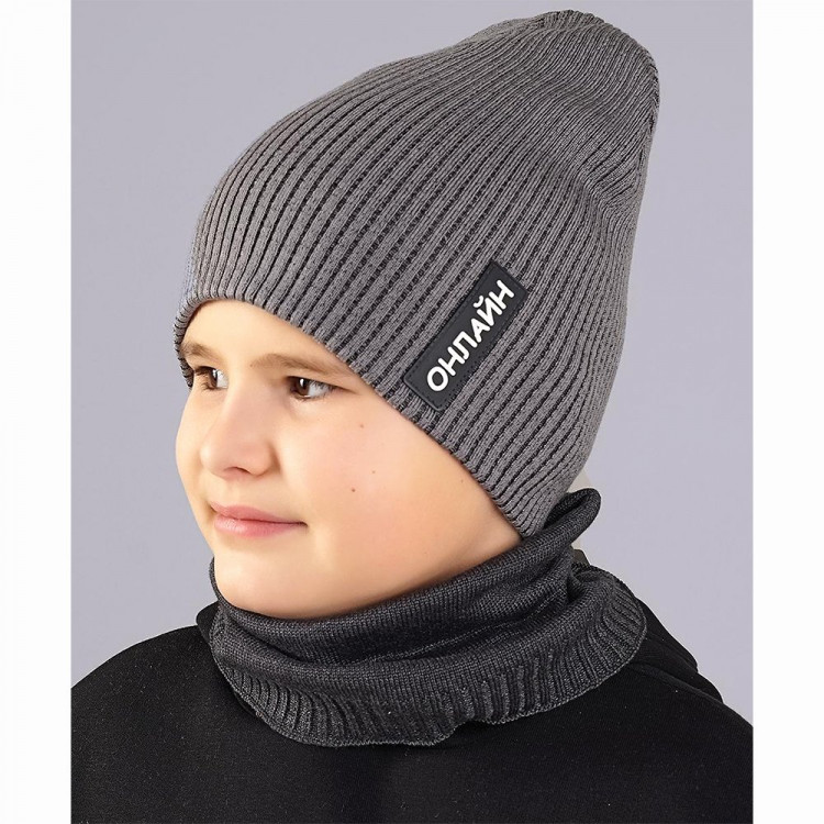 яяяШапка демисезонная для мальчика арт.533720ха (CLEVER) размер 52-54 цвет серый/черный