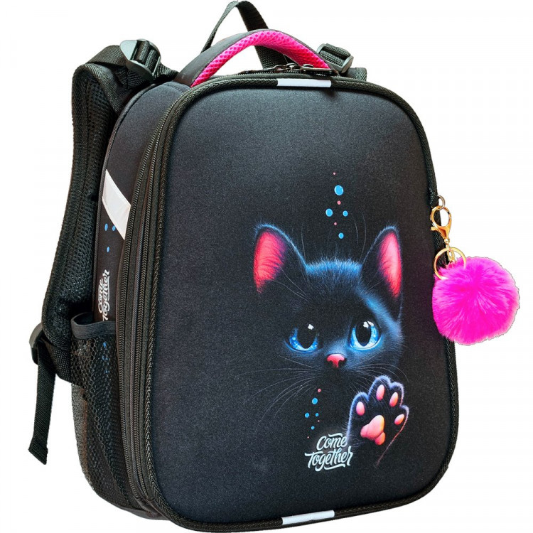 Ранец изготовлен из формованного EVA-материала и высокопрочного непромокаемого полиэстера. Размер 30 х 38 х 16 см. Вес 900 г. Прочные формованные стенки и дно ранца позволяют надежно защитить содержимое от влаги, загрязнений и предотвращают его замятие. Ранец с двумя вместительными отделениями, закрывающимися на реверсивную пластиковую молнию с металлическими «бегунками»; в первом — «плавающие» перегородки для тетрадей и учебников, во втором – большой карман из сетки и карманы-органайзеры для канцелярских принадлежностей. Плотная спинка с анатомическими элементами дополнительно укреплена пластиком, сверху – дышащая трехслойная сетка. Лямки-маечка плотные, мягкие. Регулируются по длине и высоте, что позволяет без труда отрегулировать их по росту ребенка. Ранец снабжен надежным нагрудным фиксатором и двумя боковыми карманами из прочной сетки. Есть удобная мягкая ручка для переноски и дополнительная петлевая ручка для размещения ранца на крюке. На дне ранца есть две пластиковые ножки. В соответствии с требованиями к безопасности на дороге, ранец имеет светоотражающие элементы на лямках и корпусе.