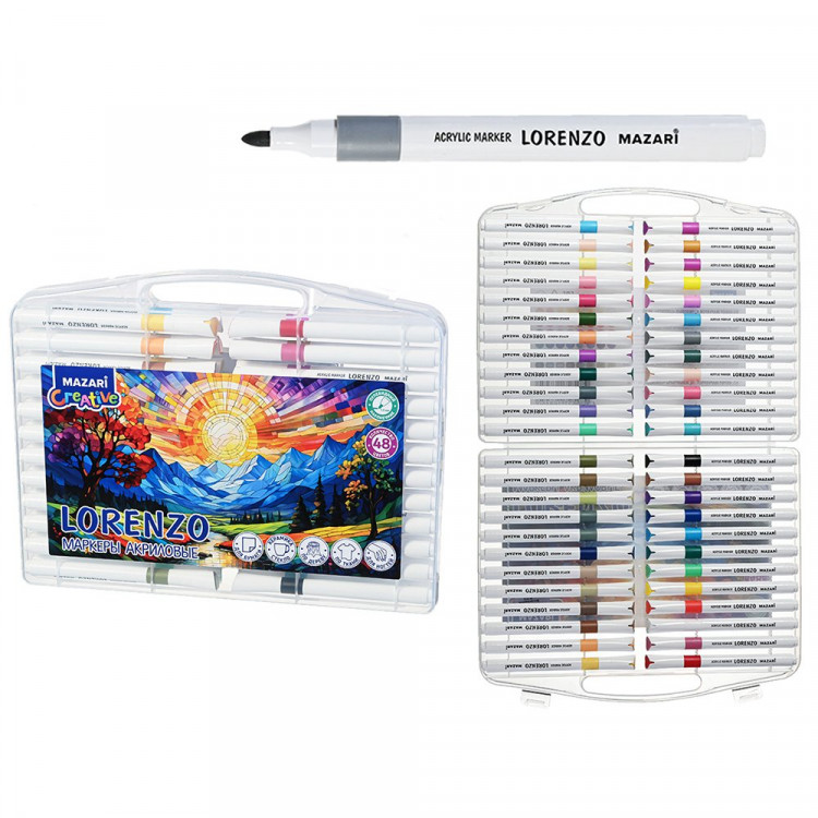 Откройте для себя безграничные возможности для творчества с акриловыми маркерами! Этот набор из 48 ярких и насыщенных цветов станет вашим незаменимым инструментом для скетчинга, иллюстраций, леттеринга и других художественных проектов. Маркеры Lorenzo идеально подходят для работы на различных поверхностях, таких как бумага, картон, дерево, ткань, пластик и даже камень.