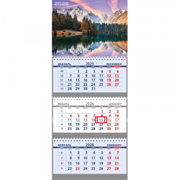 Погрузитесь в атмосферу умиротворения и величия природы с настенным трехблочным календарем "Закат в горах" на 2026 год. Этот календарь размером 295*700 мм станет не только практичным помощником в планировании, но и прекрасным украшением вашего дома или офиса. Яркое изображение горного пейзажа, залитого теплыми красками заката, будет радовать глаз и дарить вдохновение каждый день. Календарь состоит из трех блоков, удобно скрепленных гребнями, что обеспечивает легкий просмотр и перелистывание месяцев.