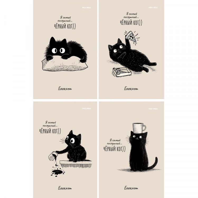 Блокнот А6 мягкая обложка скоба 24 листа (Prof-Press) Послушный черный кот ассорти арт.Б24-4698